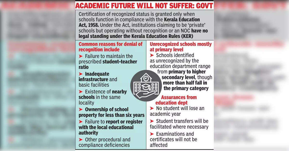 At the state level, director general of education Umesh NS said data on unauthorized schools is being collected across Kerala. So far, 1,088 schools have been identified statewide. Notices will be issued seeking explanations from managements on why they have not obtained the necessary recognition.