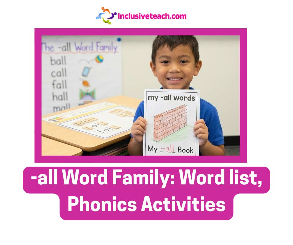 The -all word family rolls into phonics with a bouncy short A vowel sound (/ă/ as in apple), delivering rhymes that bounce like a ball or echo like a call across a hall. This rime helps young readers blend onsets (/b/ + all = ball) and spot patterns, making it a playful entry to word families. Tailored for kindergarten and first-grade lessons, it ties into themes like sports, seasons, and sounds, perfect for active learners. Whether you’re a classroom teacher, homeschool parent, or literacy tutor, this guide offers a comprehensive list of 70+ -all words (from basics to blends and extensions), plus engaging activities to keep kids hooked. Dive in and watch the “aha!” moments roll!