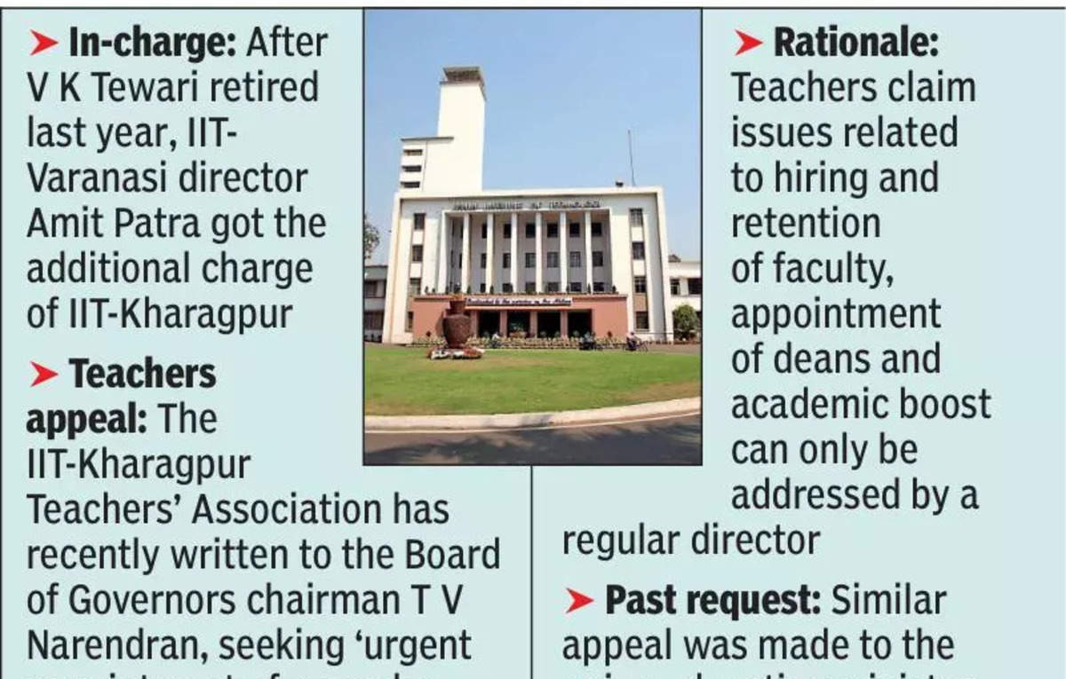 Since the retirement of V K Tewari in Dec 2024, IIT-Kharagpur is being run by IIT-Varanasi director Amit Patra, who was given the additional charge of IIT-Kharagpur.