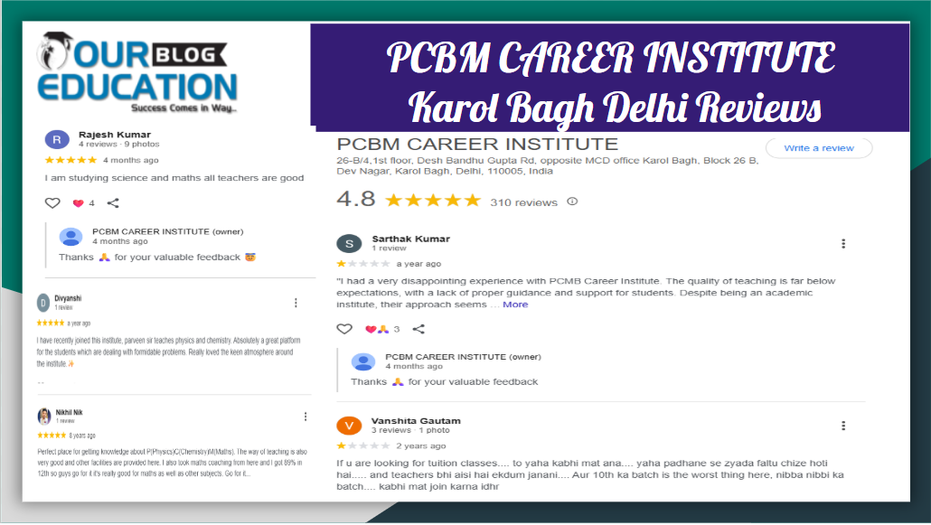 we are going to Review PCBM CAREER INSTITUTE Coaching in Karol Bagh Delhi. Complete Review of PCBM CAREER INSTITUTE Coaching in Karol Bagh Delhi will be provided in this article. If you are thinking of Joining PCBM CAREER INSTITUTE Coaching in Karol Bagh Delhi then it is very Important for you to Read in depth Review of PCBM CAREER INSTITUTE Coaching in Karol Bagh Delhi which is a in depth Research by blog.oureducation.in