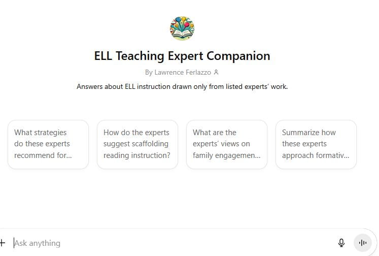 This AI chatbot I set up last month has been getting lots of use by ELL teachers. It only uses a database of resources and educators that I’ve curated to answer questions. It will also tell you who’s on the list and give you instructions on how you can make suggestions for additions (which is basically just contacting me with your recommendation).