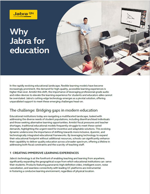 Transform education with Jabra’s audio and video technology, designed for immersive learning, and seamless connectivity. Enhance student engagement and accessibility with professional-grade technology tailored for modern educational needs.
